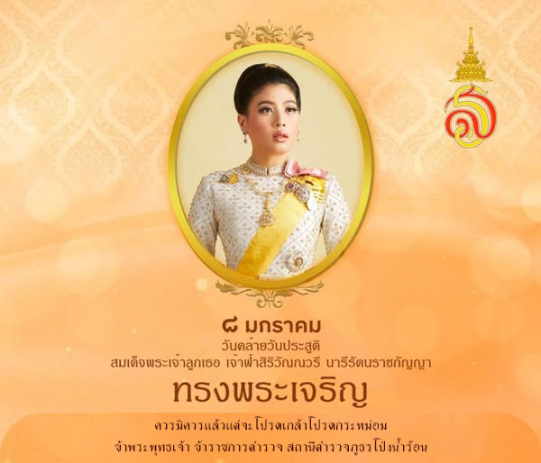 8 มกราคมวันคล้ายวันประสูติสมเด็จพระเจ้าลูกเธอ เจ้าฟ้าสิริวัณณวรี นารีรัตนราชกัญญา ทรงพระเจริญ ควรมิค…