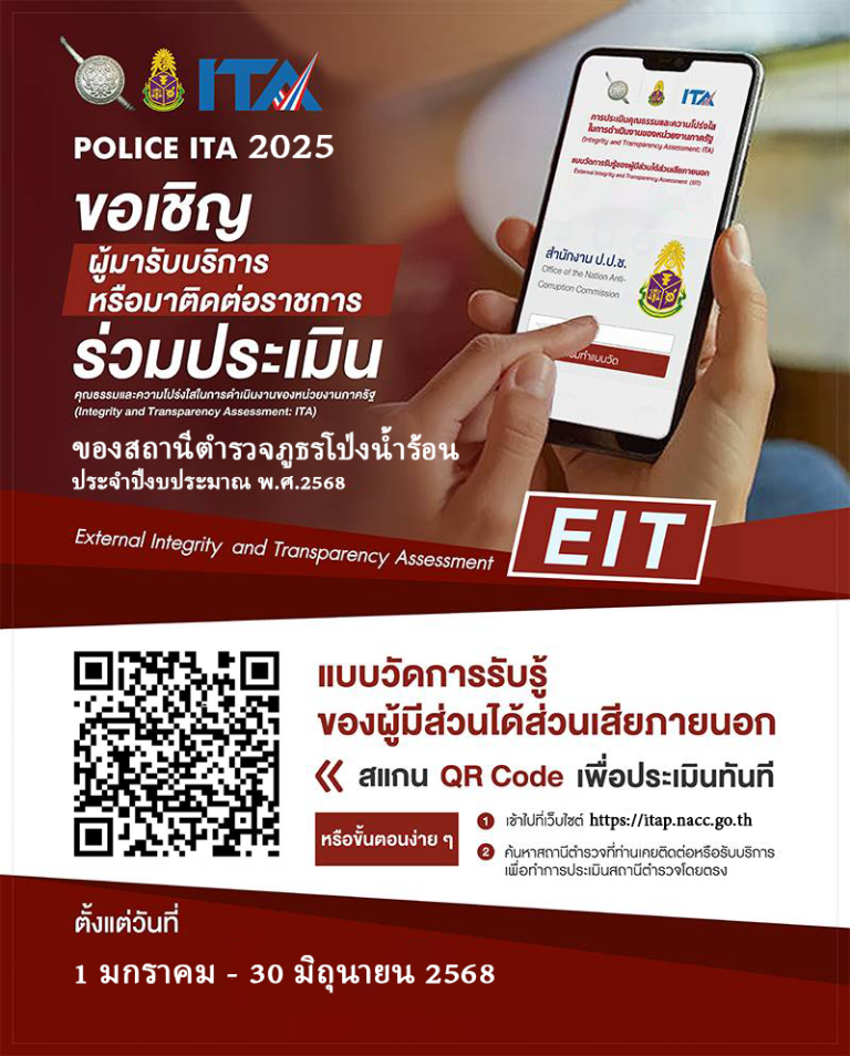 สถานีตำรวจภูธรโป่งน้ำร้อน ขอเชิญชวน เข้าร่วมกิจกรรม Clinic ITA 2024 ครั้งที่ 2 ประจำปีงบประมาณ พ.ศ. …