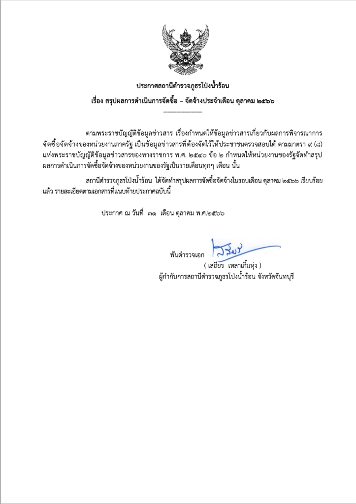 ประกาศจัดซื้อจัดจ้าง ประจำเดือน ตุลาคม พ.ศ.2566 31 ตุลาคม 2566 โดย admin / ข่าวจัดซื้อจัดจ้าง FacebookFacebookXXLINELine