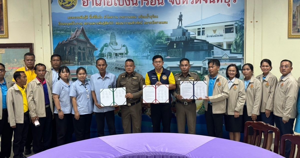 ร่วมลงนาม MOU การป้องกันและแก้ไขปัญหาสารเสพติด และ การเสริมสร้างความปลอดภัยของสถานศึกษาในพื้นที่อำเภอโป่งน้ำร้อน