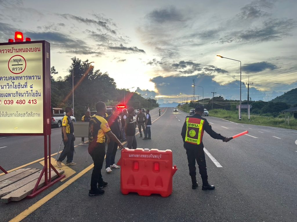 พร้อมสายตรวจตู้ยามคลองใหญ่สายตรวจรถยนต์ บูรณาการร่วมกับเจ้าหน้าที่ฝ่ายปกครองอำเภอโป่งน้ำร้อน เจ้าหน้าที่ตำรวจ ตชด.ที่ 115 ตรวจคนเข้าเมือง สำนักงานปลัดกระทรวงสาธารณสุข ร่วมกันตั้งจุดตรวจ/จุดสกัด ปฏิบัติการกวาดล้างอาชญากรรม จัดระเบียบสังคมให้ปลอดภัยในพื้นที่อำเภอโป่งน้ำร้อน จังหวัดจันทบุรี บริเวณจุดตรวจบ้านหนองบอน ชุดควบคุมทหารพรานนาวิกโยธินที่ 4 ม.1 ต.คลองใหญ่อ.โป่งน้ำร้อน จ.จันทบุรี