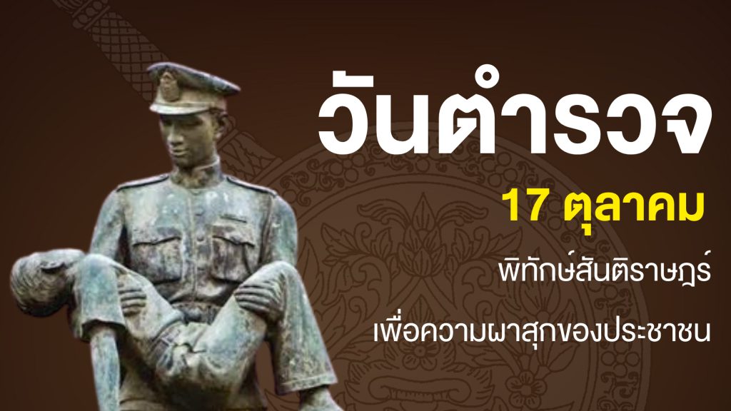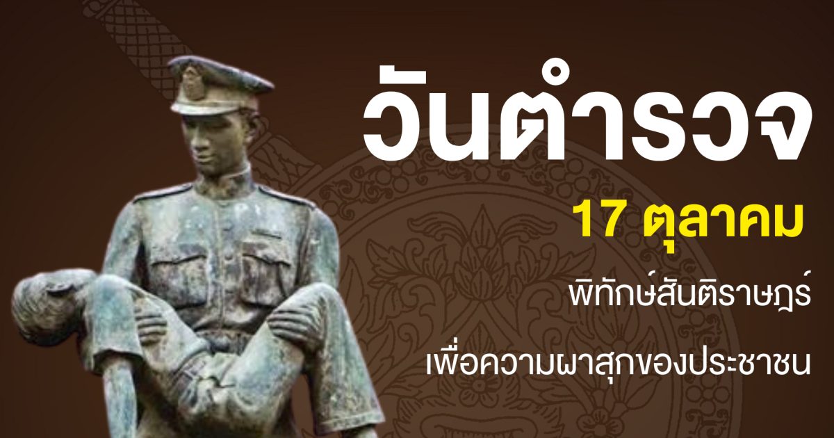 17 ตุลาคม วันสถาปนาสำนักงานตำรวจแห่งชาติ 17 ตุลาคม 2567 โดย admin / ข่าวประชาสัมพันธ์ วันตำรวจ 2567 17 ตุลาคม วันสถาปนาสำนักงานตำรวจแห่งชาติ อุดมคติตำรวจ“เคารพเอื้อเฟื้อต่อหน้าที่กรุณาปราณีต่อประชาชนอดทนต่อความเจ็บใจไม่หวั่นไหวต่อความยากลำบากไม่มักมากในลาภผลมุ่งบำเพ็ญตนให้เป็นประโยชน์แก่ประชาชนดำรงตนในยุติธรรมกระทำการด้วยปัญญารักษาความไม่ประมาทเสมอชีวิต” FacebookFacebookXXLINELine