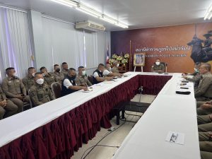 วันที่ 19 มกราคม 2567 พ.ต.ท.สุนทร กะมะโน รอง ผกก.ป.สภ.โป่งน้ำร้อน พร้อมด้วย พ.ต.ท.สมศักดิ์ ฝ่ายเตย สวป.สภ.โป่งน้ำร้อน อบรมปล่อยแถว สายตรวจ ก่อนออกปฏิบัติหน้าที่ มีการอบรม กําชับ การปฏิบัติงานของ เจ้าหน้าที่ตำรวจ สายตรวจ ให้ปฏิบัติตามกฎหมายอย่างเคร่งครัด ไม่ให้เรียกรับ ทรัพย์สินหรือ ประโยชน์อื่นใด เพื่อช่วยเหลือผู้กระทำผิดทุก กรณี