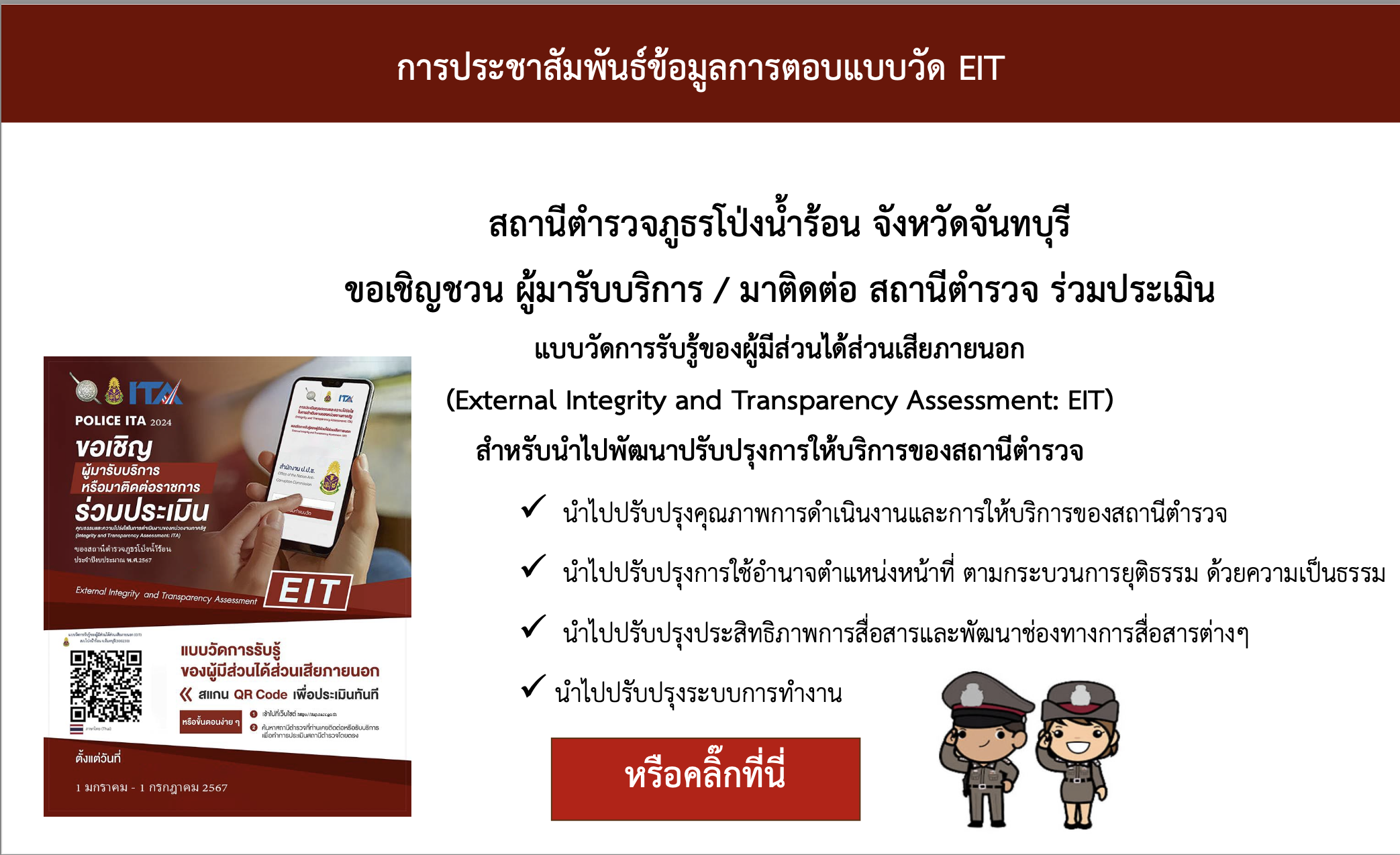 สถานีตำรวจภูธรโป่งน้ำร้อน ขอเชิญชวน เข้าร่วมกิจกรรม Clinic ITA 2024 ครั้งที่ 2 ประจำปีงบประมาณ พ.ศ.