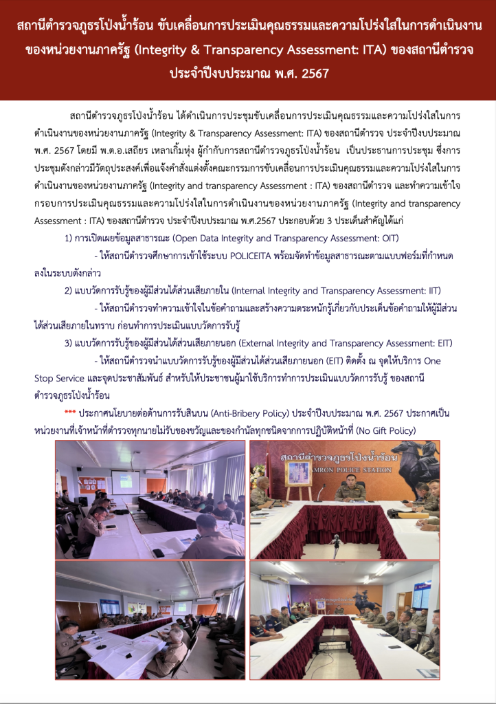 คู่มือการประเมิน ITA ของสถานีตำรวจภูธร 2567