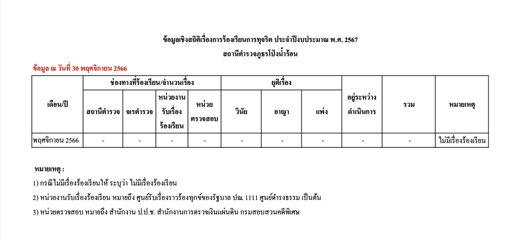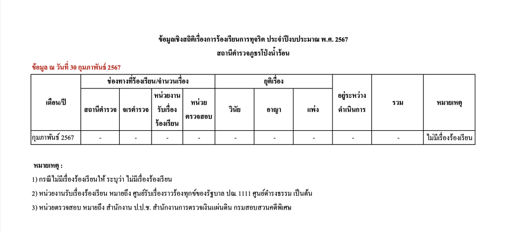 O17 ช่องทางการแจ้งเรื่องร้องเรียนการทุจริตและข้อมูลเชิงสถิติเรื่องร้องเรียนการทุจริต