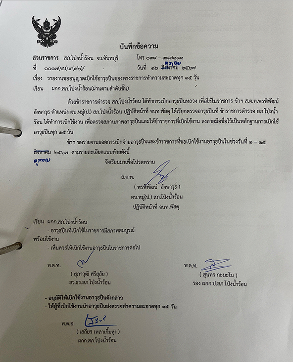 3. รายงานผลการปฏิบัติเกี่ยวกับการจัดการทรัพย์สินของราชการของบริจาค ของสถานีตำรวจภูธรโป่งน้ำร้อน