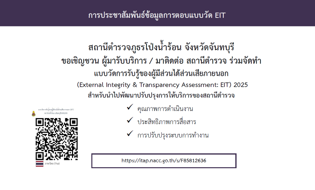 สถานีตำรวจภูธรโป่งน้ำร้อน ขอเชิญชวน เข้าร่วมกิจกรรม Clinic ITA 2024 ครั้งที่ 2 ประจำปีงบประมาณ พ.ศ.